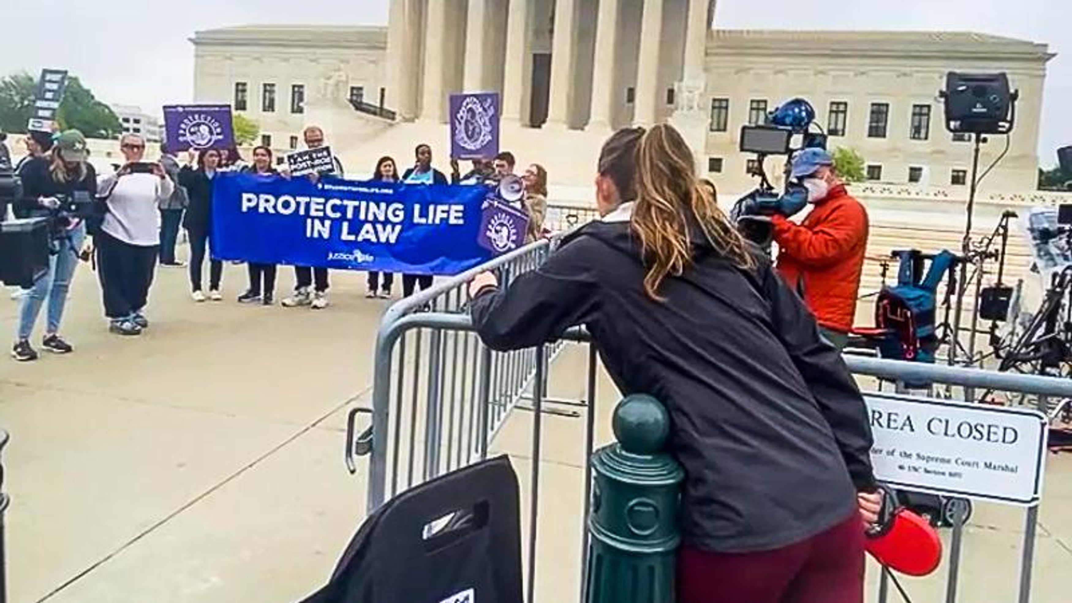 The morning after Politico leaked a decision that would reportedly end federal abortion rights, anti-abortion groups assembled outside the Supreme Court.